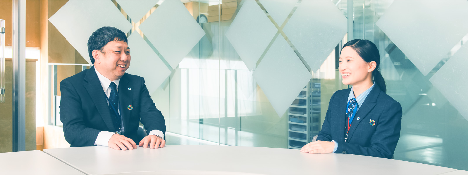 「もともと人見知りで、緊張しやすいタイプ」と自己分析する高藤。いまでは、お客さまから「笑顔がいいね」などと声をかけてもらえることもあるといいます。こうした経験を経るうちに、誰とでも自然に話しができるようになり、会話を楽しむ余裕が生まれました。